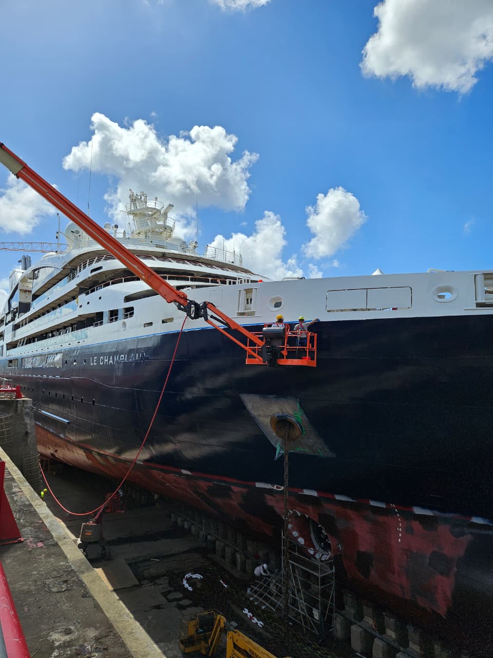 C'est vrai qu'on est au cœur des Caraïbes, ce qui nous permet de toucher un maximum de clients, autant les tankers qui gravitent dans la zone comme les supply offshore, tout ce qui est bateau d'assistance de plateformes, etc. Mais aussi les bateaux de croisière. On a eu énormément d'interventions à quai durant la saison des croisières l'année passée. Là, ça repart aussi sur des chapeaux de roues puisqu'on a le Champlain actuellement en bassin. On a le Royal Clipper planifié en décembre et on a également des demandes pour début 2026, au bassin ou même à flot. Le deuxième atout, ce sont les compétences locales. Malheureusement, on a un peu pâti de la fermeture du bassin de radoub durant la période Covid. Mais en un an, on peut être fiers des ressources locales, puisqu'elles ont su relever le défi. Elles sont montées en compétences sur les différents métiers, autant peinture que mécanique, mais également chaudronnerie.