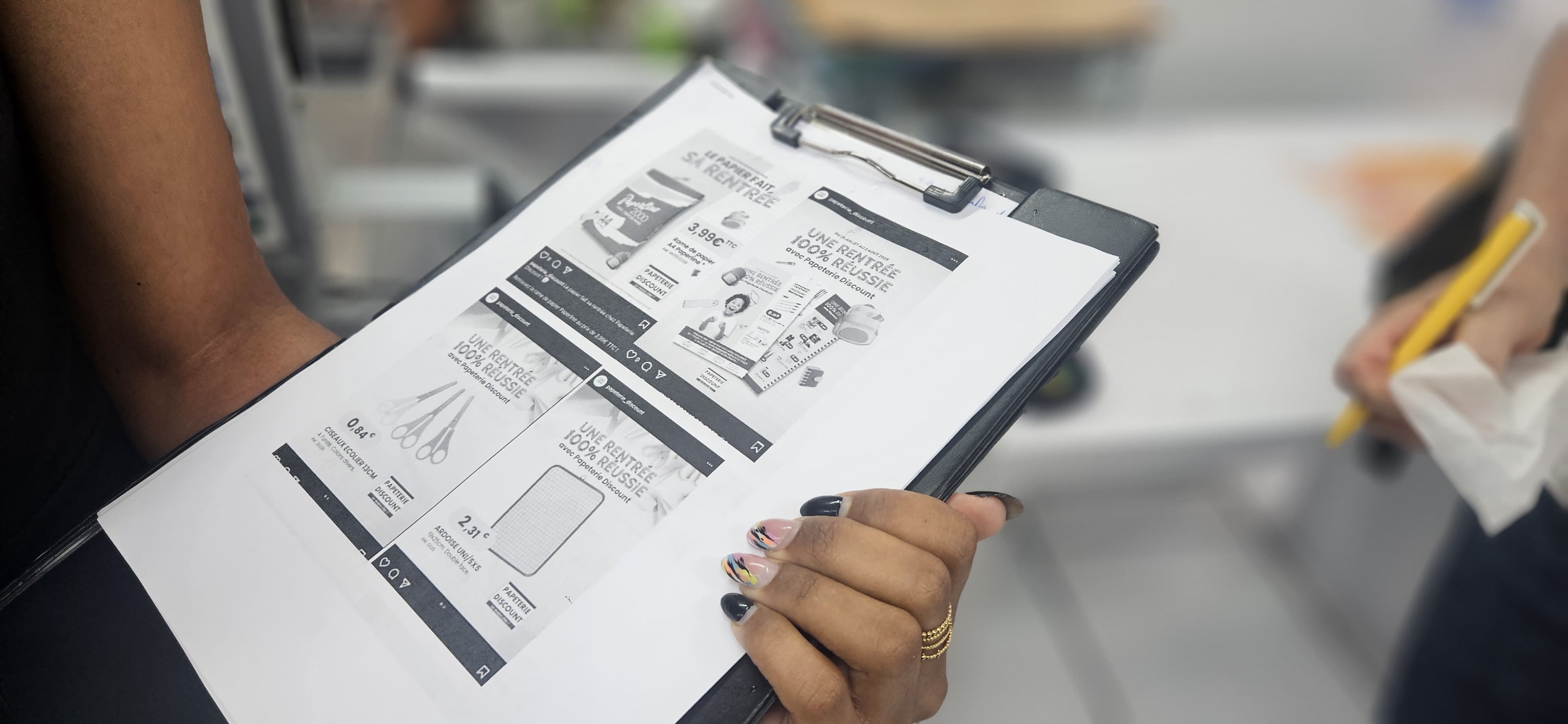 Objectif : s’assurer de la conformité de l’affichage des prix, aussi bien en rayon qu’en caisse, sur une cinquantaine de références courantes, allant des crayons aux cahiers.