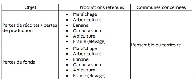 Par arrêté n° R02-2025-07-25-00003 publié le 25 juillet 2025, le préfet de la Martinique a officiellement reconnu le sinistre lié aux fortes pluies survenues entre janvier et février 2025, ayant impacté les productions suivantes :