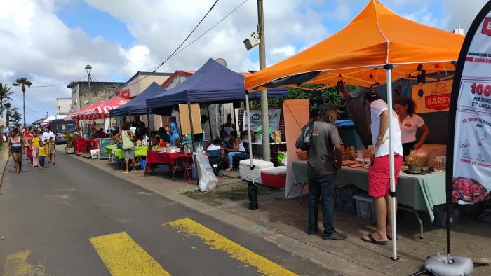 L'ambiance est agréable. La population qui vient faire des bonnes affaires est conquise. Il y a vraiment de beaux échanges avec les acteurs économiques qui sont sur le village. Tout le monde y trouve son compte. On invite toute la population martiniquaise à venir sur cette mairie. On peut y trouver des produits transformés, de la confiture, des liqueurs, des légumes pays, des bijoux artisanaux, des vêtements faits main. Les coopératives de viande ont dû faire un réassort parce qu'elles ont été prises d'assaut. Et puis, surtout, la Case à farine est de retour. Et puis, il y a des animaux en exposition et en vente. Vraiment, il y a de tout pour satisfaire tout le monde sur le village.