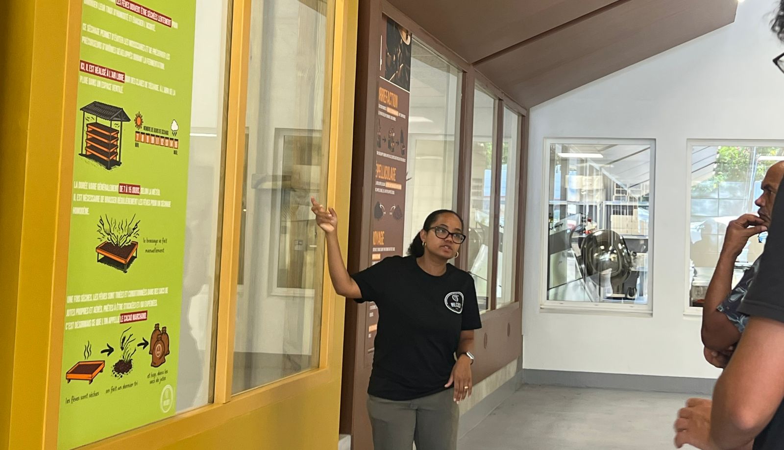 Lorsque les gens viendront, ils vont découvrir toutes les étapes de la production de chocolat, c'est-à-dire : comment on passe du fruit, de la cabosse, à la tablette de chocolat. Il y a la partie cabossage, fermentation, séchage, torréfaction, broyage, conchage, moulage. Il y aura vraiment toutes les étapes adoptées pour en arriver à la tablette de chocolat avec les explications ou en visite guidée. Et après, ils pourront accéder à la boutique pour pouvoir boire un chocolat chaud, un chocolat frais, acheter des tablettes de chocolat et d'autres produits d'épiceries fines, de producteurs martiniquais ou d'inspiration de chez nous.