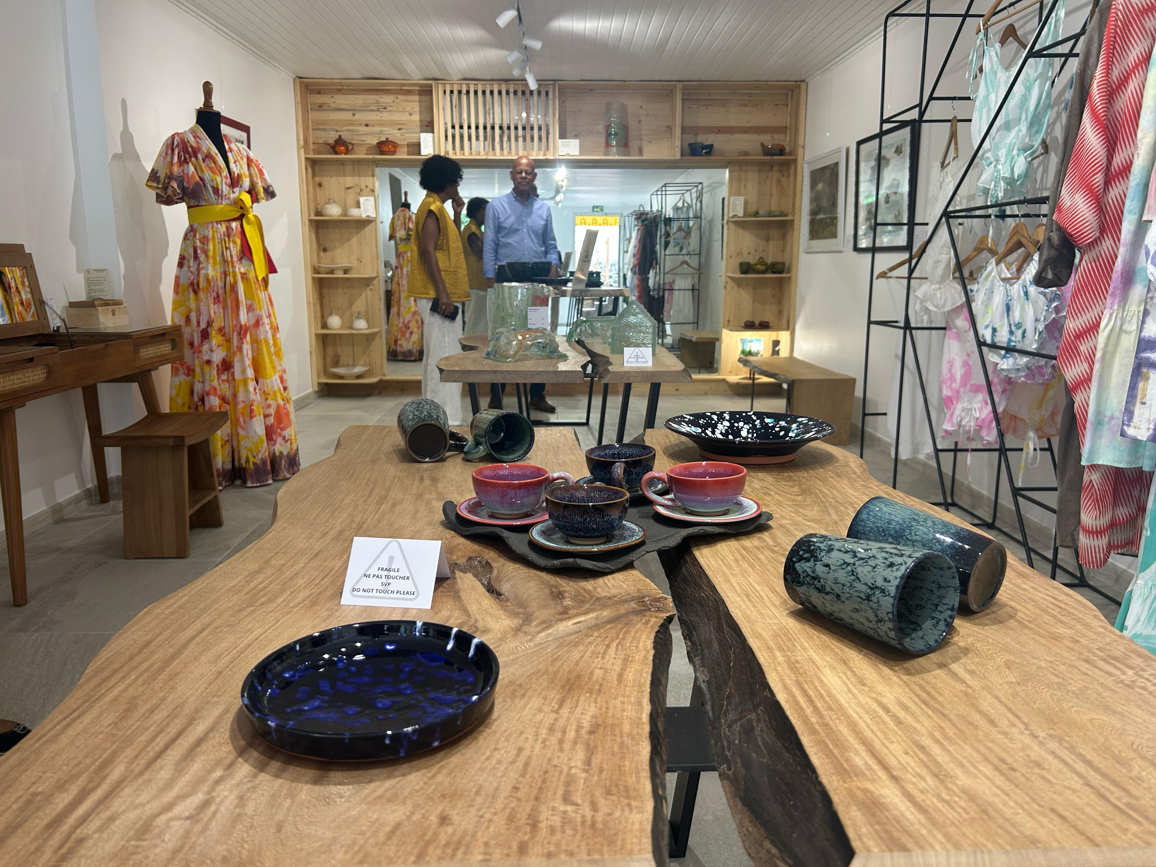 Les Ateliers Kalibouka aux Trois-Ilets font partie des cinq tiers-lieux labellisés par l’Etat visités ce lundi. Il s’agit d’un lieu d’exposition et de vente visant à soutenir les métiers de l’artisanat d’art, du design et de l’art.