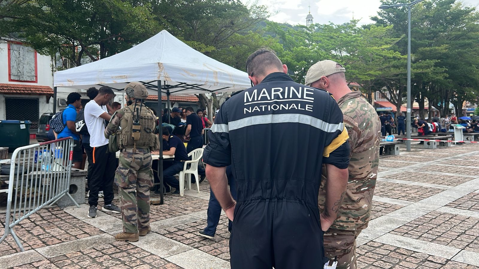 Dans le cadre des journées de la cohésion, le lycée Joseph-Gaillard a sollicité les forces armées pour organiser un exercice MECO (secours et assistance à la population) sur la place de Saint-Pierre.