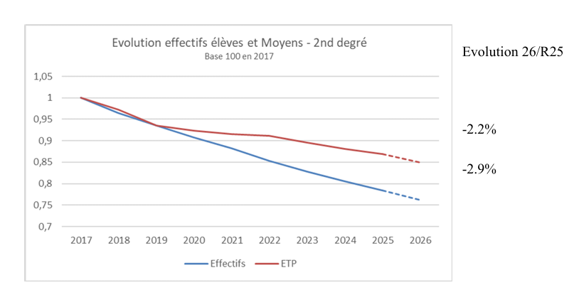 De son côté, le syndicat SNES-FSU estime que la crainte d'une baisse est forte dans le domaine premier degré où les enseignants s'attendent à de nombreuses fermetures de classes et que l'argument de la baisse démographique ne peut être le seul élément pris en compte parmi ces données.