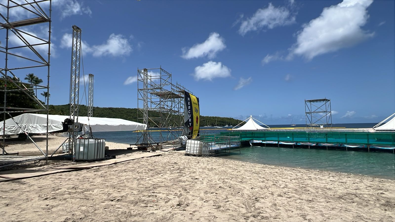 Après le nettoyage dimanche (27 juillet), place au démontage des installations, ce lundi, sur la plage de Grand Anse, aux Anses-d’Arlet. Les structures mises en place pour la Mercury Beach, samedi, sont en cours d’évacuation. Les organisateurs se félicitent du bon déroulement de l'événement.
