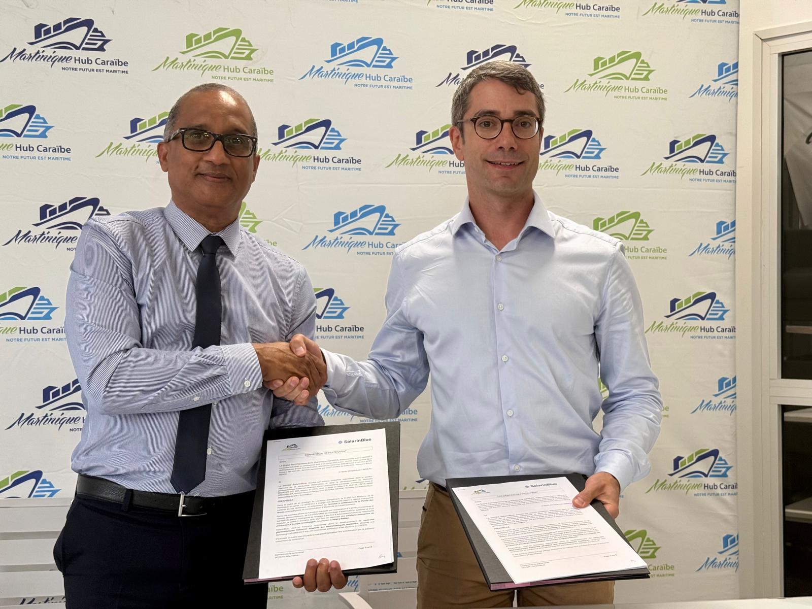 Ce mardi (30 septembre), le Grand Port Maritime de Martinique a signé avec la start-up "Solar In Blue" une convention qui encadre le lancement du projet "Soley Blé". Il s'agit du projet d'implantation d'une centrale photovoltaïque dans la baie de Fort-de-France