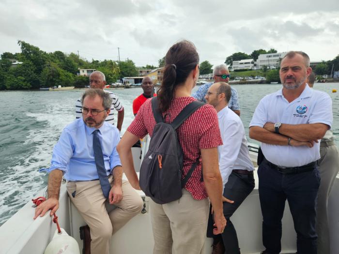 Etienne Desplanques s’est également entretenu, de façon informelle, avec quatre membres du collectifs anti-sargasses du Robert, devant la base nautique, avant d’embarquer. Un échange courtois et constructif selon les deux parties.