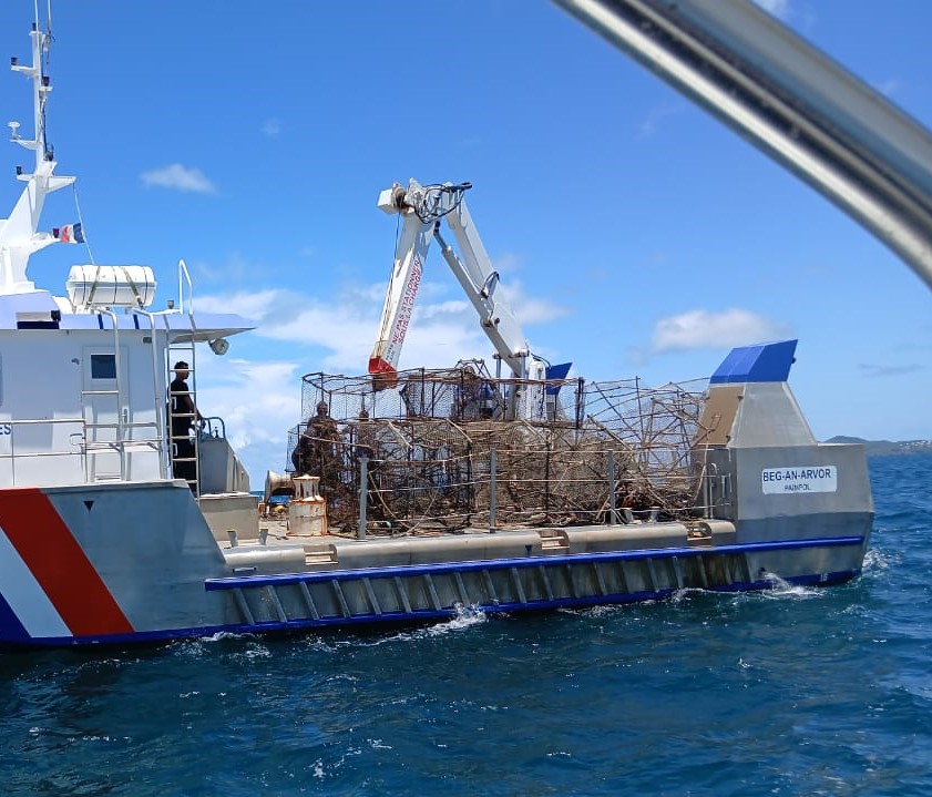 Les équipes nautiques et les plongeurs de la direction de la mer ont procédé à la récupération d’engins de pêche – notamment des nasses et filets – déposés illégalement dans des zones interdites à la pêche, notamment celles contaminées par la chlordécone.