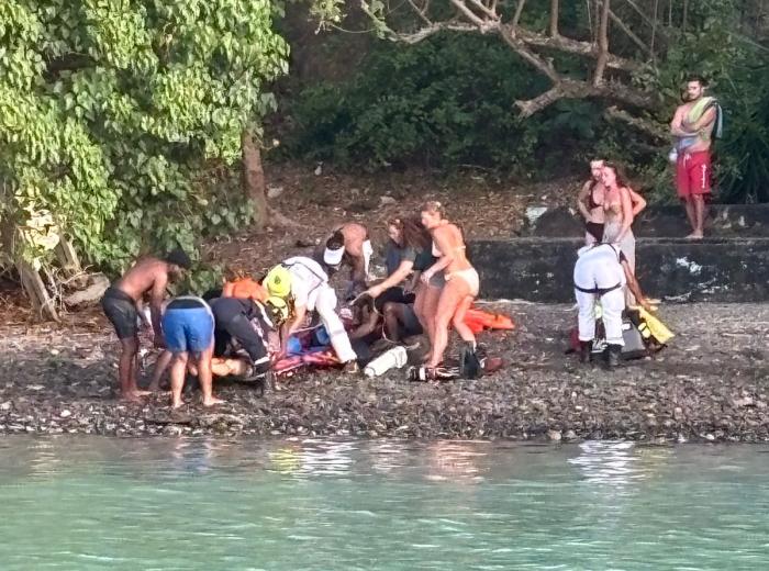 Les personnes présentes lui ont porté assistance et les équipes de la sécurité civile l’ont pris en charge, l’intervention était encore en cours sur place à 17h30 et a demandé le concours du Dragon 972.