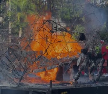 Des flammes montantes impressionnantes ont réduit en cendres l’œuvre du plasticien Hervé Beuze et des équipes du Campus caribéen des Arts. Un périmètre de sécurité a été mis en place pour tenir la foule à distance.