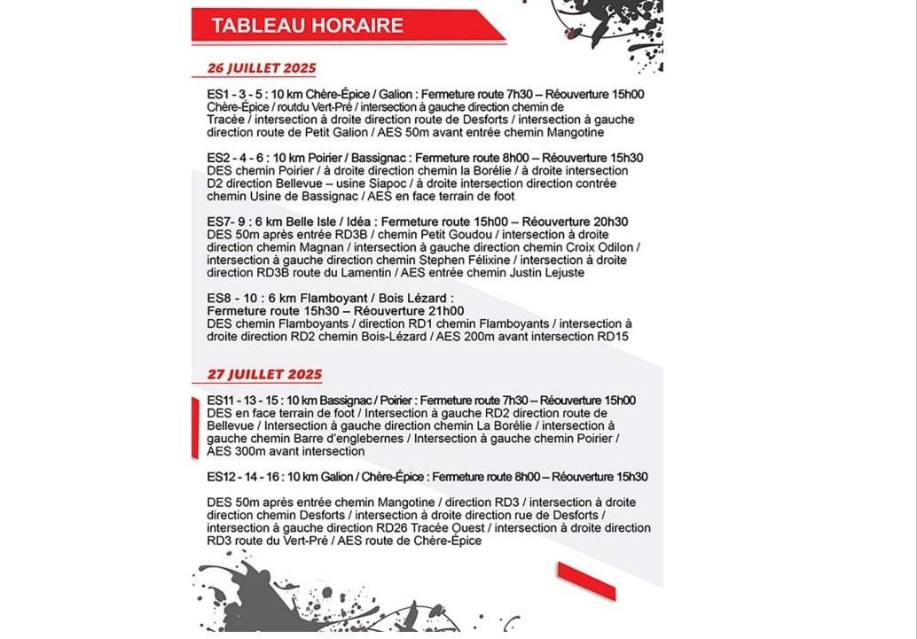 Le Martinique Rallye Tour (MRT 2025), organisé conjointement par la Ligue de Sport Automobile de la Martinique (LSAM) et WNS Racing, est comptabilisé dans le calendrier officiel du Championnat de France des Rallyes 2e division ainsi que du Barbados Rally2 Championship.