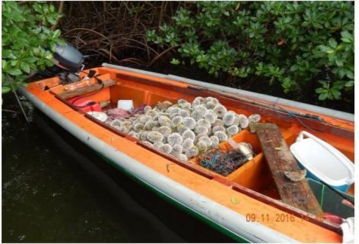 En tout cas, plusieurs plaisanciers ont été surpris en flagrant délit de pêche illicite d'oursins blancs, le 9 novembre dernier, à bord d'une yole (cf. photo) du côté du Cap Chevalier, dans le sud de la Martinique.