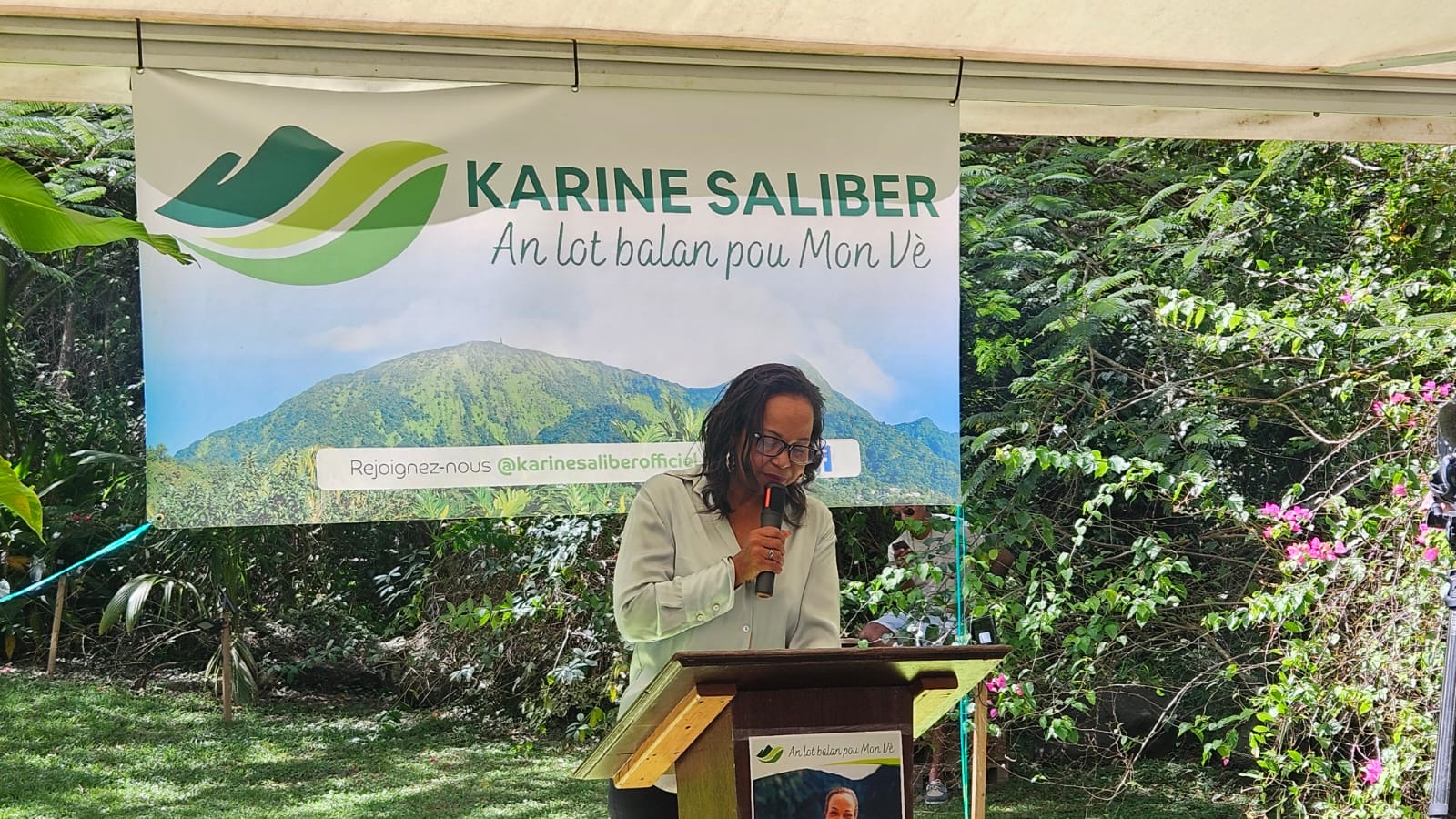 Engagée en politique depuis plusieurs années, Karine Saliber se dit sans étiquette politique, malgré les soutiens notables de Péyi-A et du RDM, sans être investie par ces formations politiques :