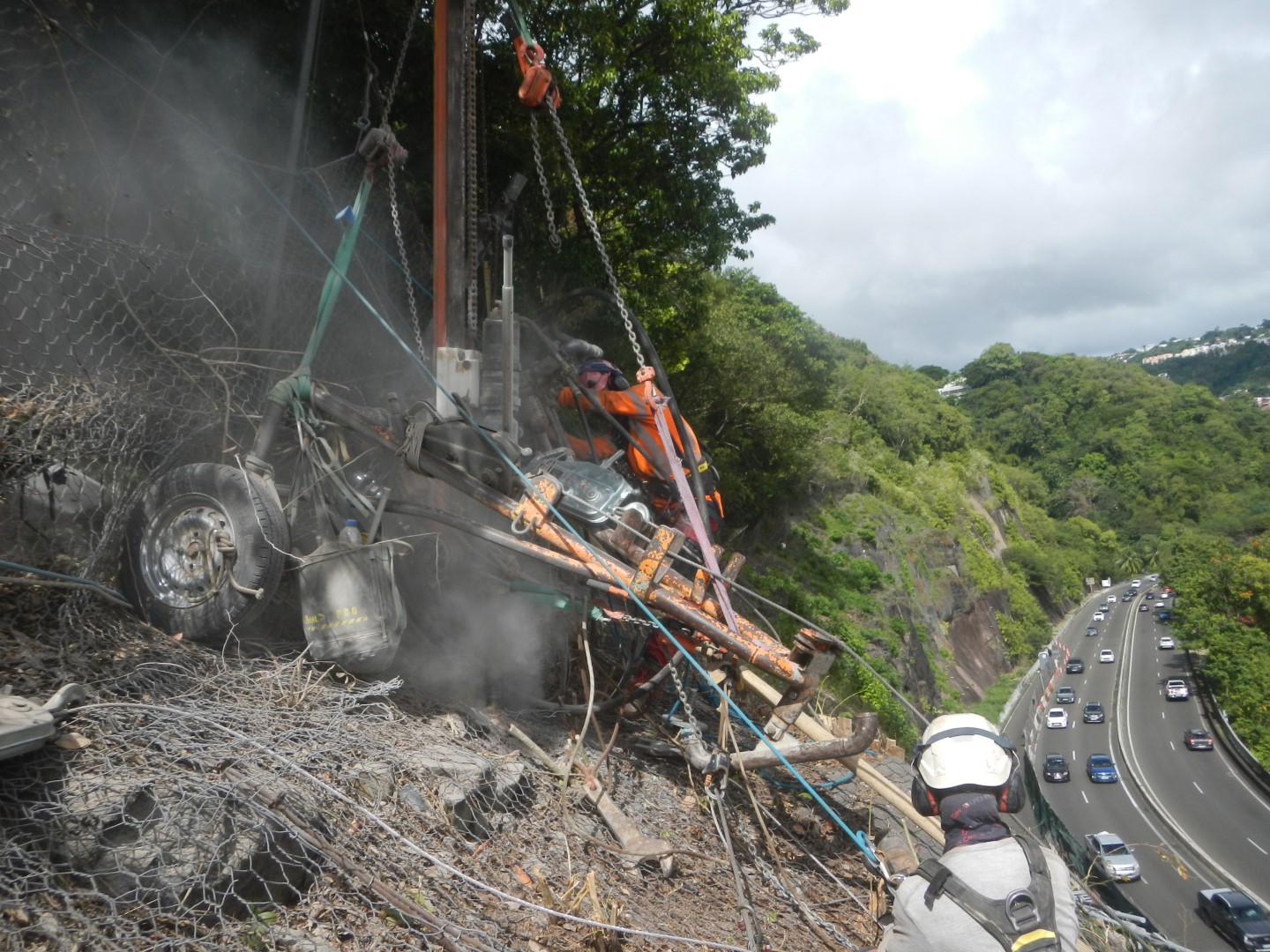 Et c’est particulièrement le cas, sur la rocade de Fort-de-France, entre Pont de Chaînes et Didier, où un important chantier est engagé, comme le précise Pascal Chuit, chef du Bureau Géologie Géotechnique à la Collectivité Territoriale de la Martinique.