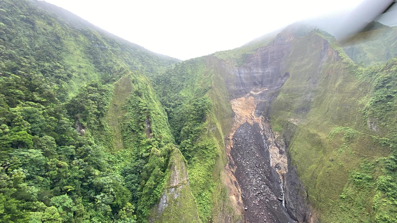Ce mercredi (22 octobre 2025), en marge de sa visite à l'observatoire volcanologique et sismologique de la Martinique, le préfet de l'île, Etienne Desplanques a procédé au survol de la falaise Samperre et de la rivière du Prêcheur, source des lahars qui dévalent le cours d'eau.
