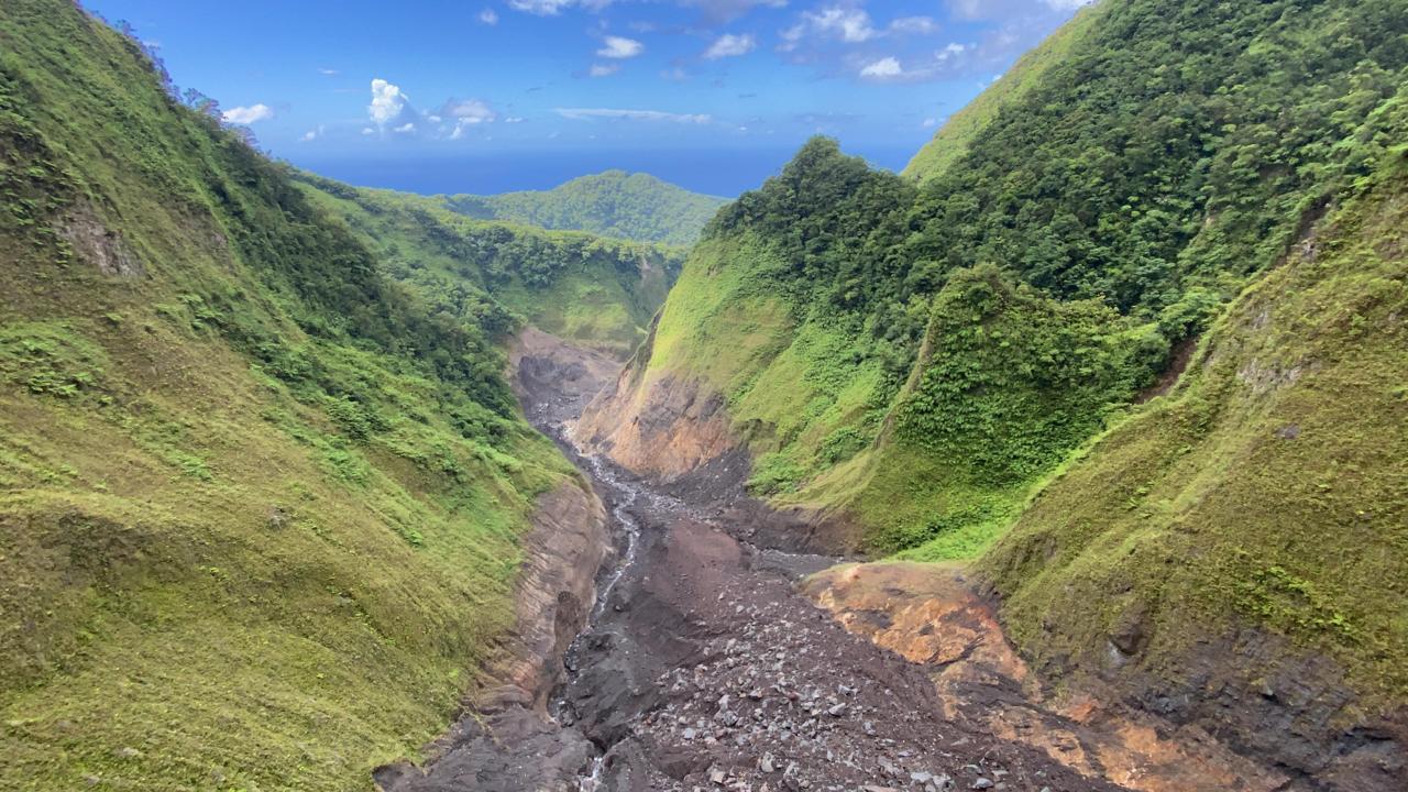 [En images] La falaise Samperre, source des lahars, et la rivière du Prêcheur vues du ciel