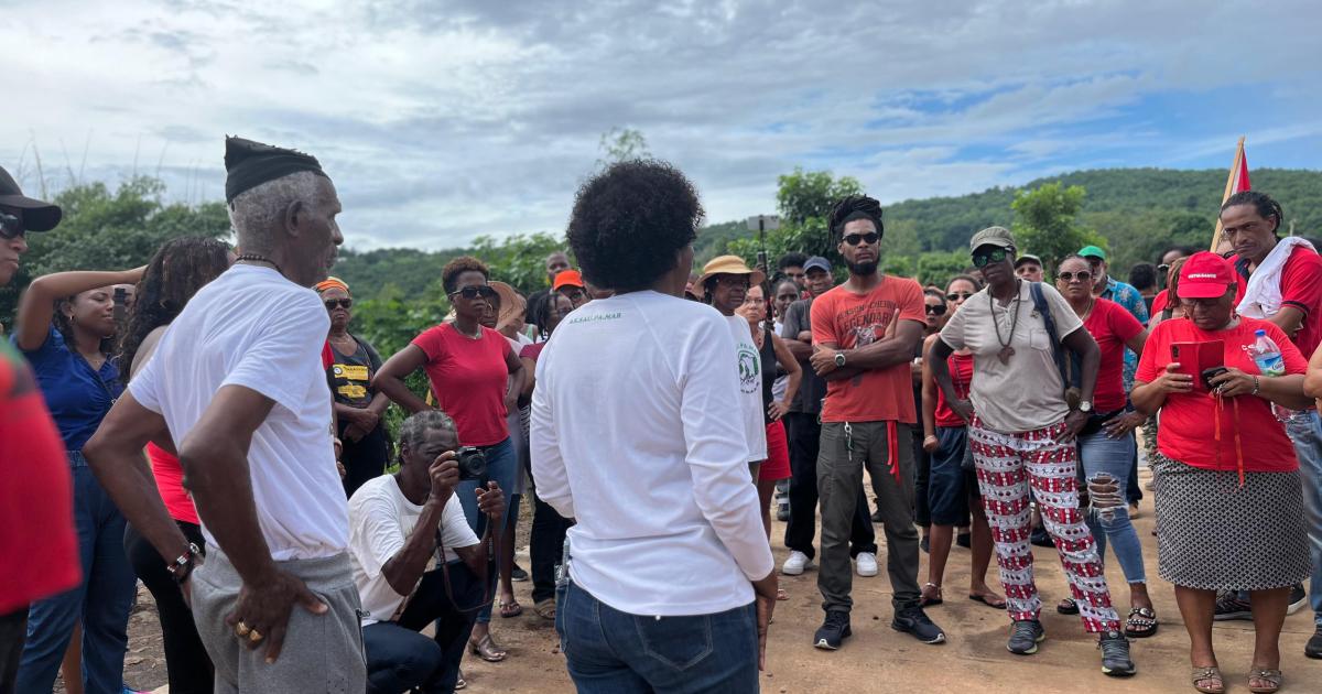 Au quartier L'Avenir, au Saint-Esprit, tour à tour, les prises de parole s'enchaînent. Représentants d'associations, partis politiques ou encore simples citoyens protestent pacifiquement contre le déclassement de 10 hectares qui devrait servir à la construction de logements de luxe et d'une zone commerciale accompagnée de la grande distribution. Une implantation qui asphyxierait les petits commerces de la ville, selon Miguel Duval, Spiritain depuis 67 ans.