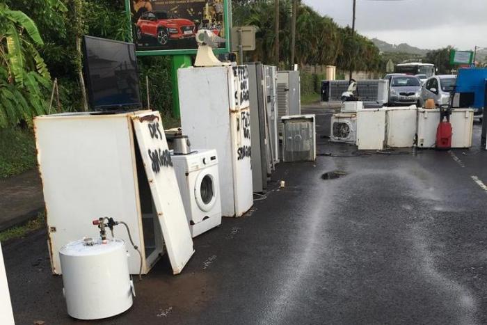 À la veille de la visite du président de la République, Emmanuel Macron, ils veulent alerter sur leurs désarroi face aux sargasses. Ils ont disposé sur la route leur matériel électroménager abîmé par les gaz dégagés par les algues brunes.