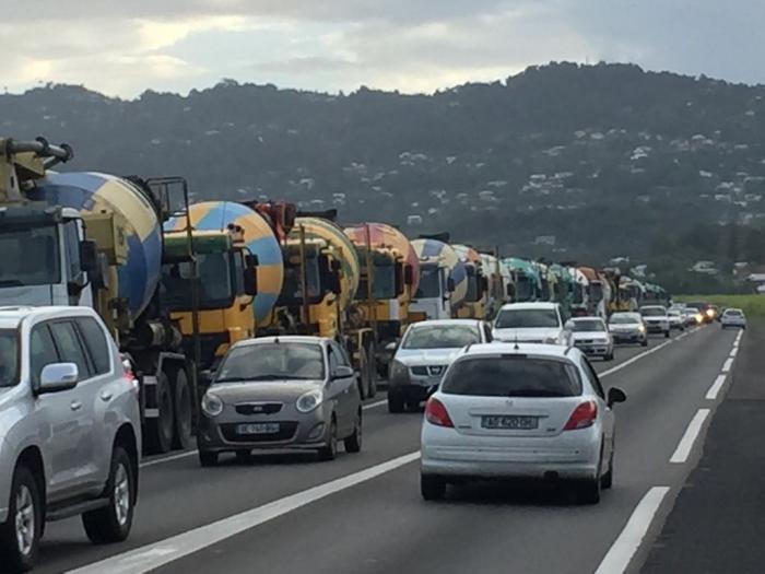 Ils protestent contre le recours de plus en plus fréquent à des centrales à béton mobile sur les grands chantiers de l'île. Un mode opératoire qui avait déjà généré leur colère aux abords du lycée Schoelcher il y a quelques semaines.