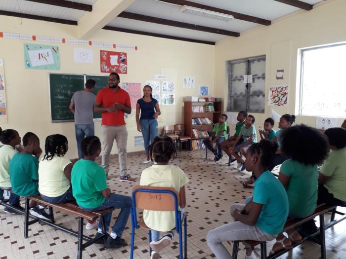 Ce jeudi matin, trois étudiants en soins infirmiers étaient à l'école primaire de Préfontaine à Rivière-Pilote. Ils apprenaient aux élèves les bons réflexes en cas d'étouffement.