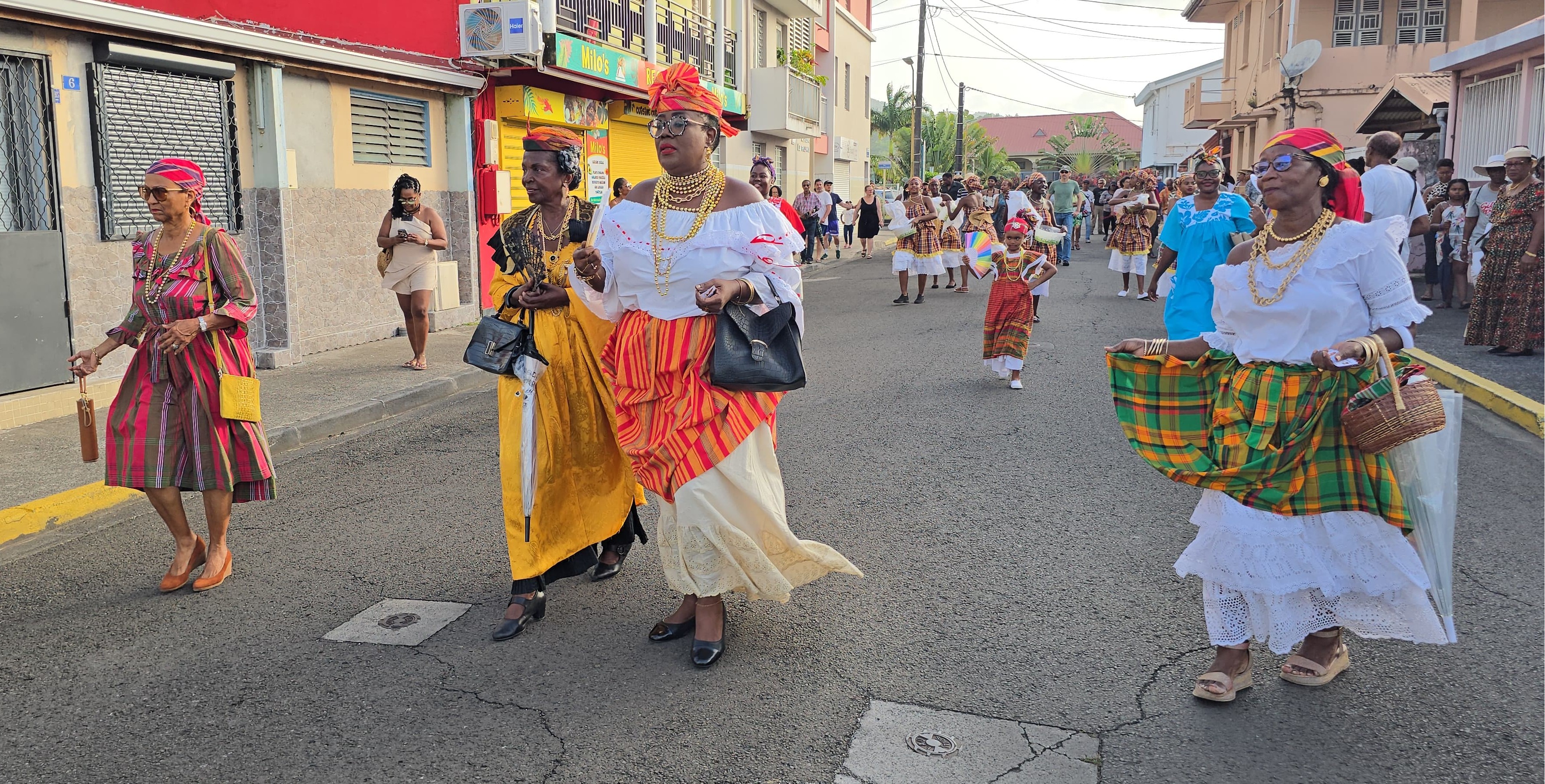 La population martiniquaise était invitée à défiler dans les rues du bourg, en tenue traditionnelle, sur le thème « Tradisyon nou pa an dégizman ».