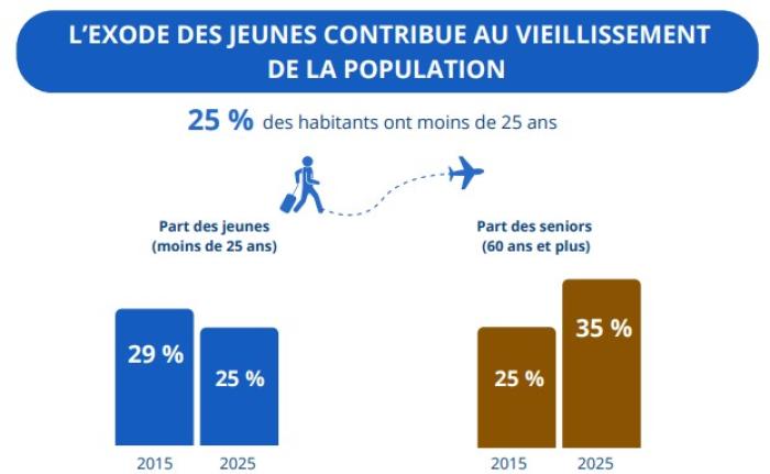 Le recul démographique se poursuit dans l’île. La population baisse de 0,7 % en moyenne par an.