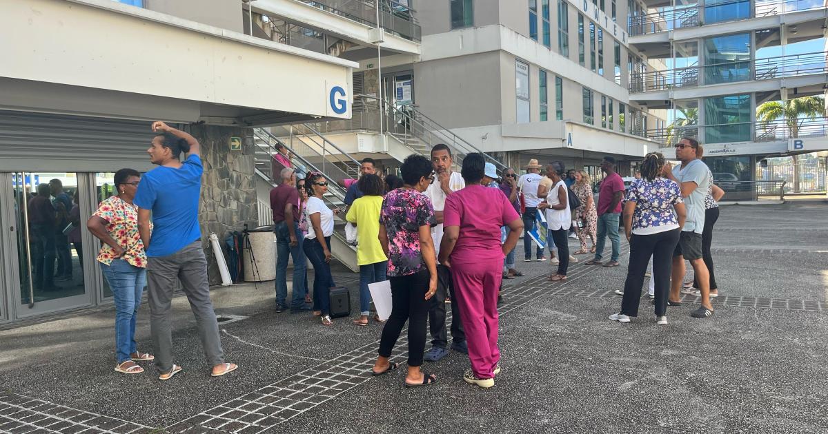 Une cinquantaine de membres de la profession se sont rassemblés en début d’après-midi devant les locaux de l’Agence régionale de santé (ARS), à la ZAC de l'Etang Z’Abricot, à Fort-de-France, où une délégation a finalement été reçue par le directeur.
