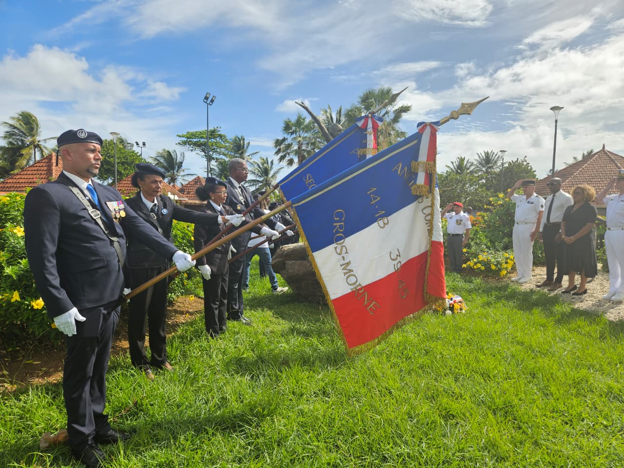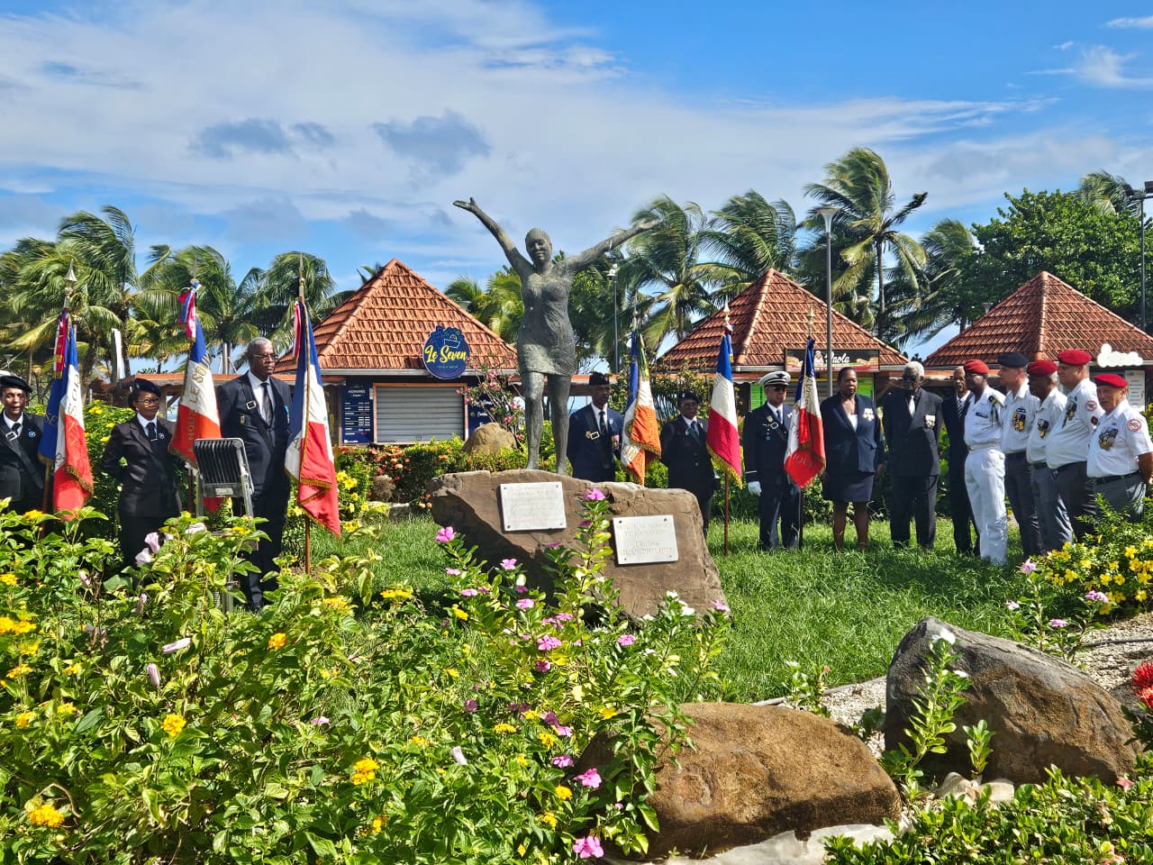 Discours et dépôt de gerbes au pied de la statue de la policière martiniquaise tuée lors de l’attentat de Montrouge en janvier 2015 ont eu lieu en présence du sous-préfet Emmanuel Fèvre, de la sénatrice Catherine Conconne, du maire de Sainte-Marie Bruno Nestor Azérot et de plusieurs membres de la famille de Clarissa.