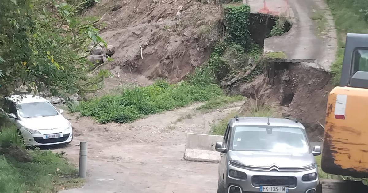 C’est à pied qu’on pourra accéder aux hauteurs de Grande Savane. La route plus praticable permettra aux agriculteurs d’accéder au bétail resté coincé depuis les fortes pluies de mai dernier.