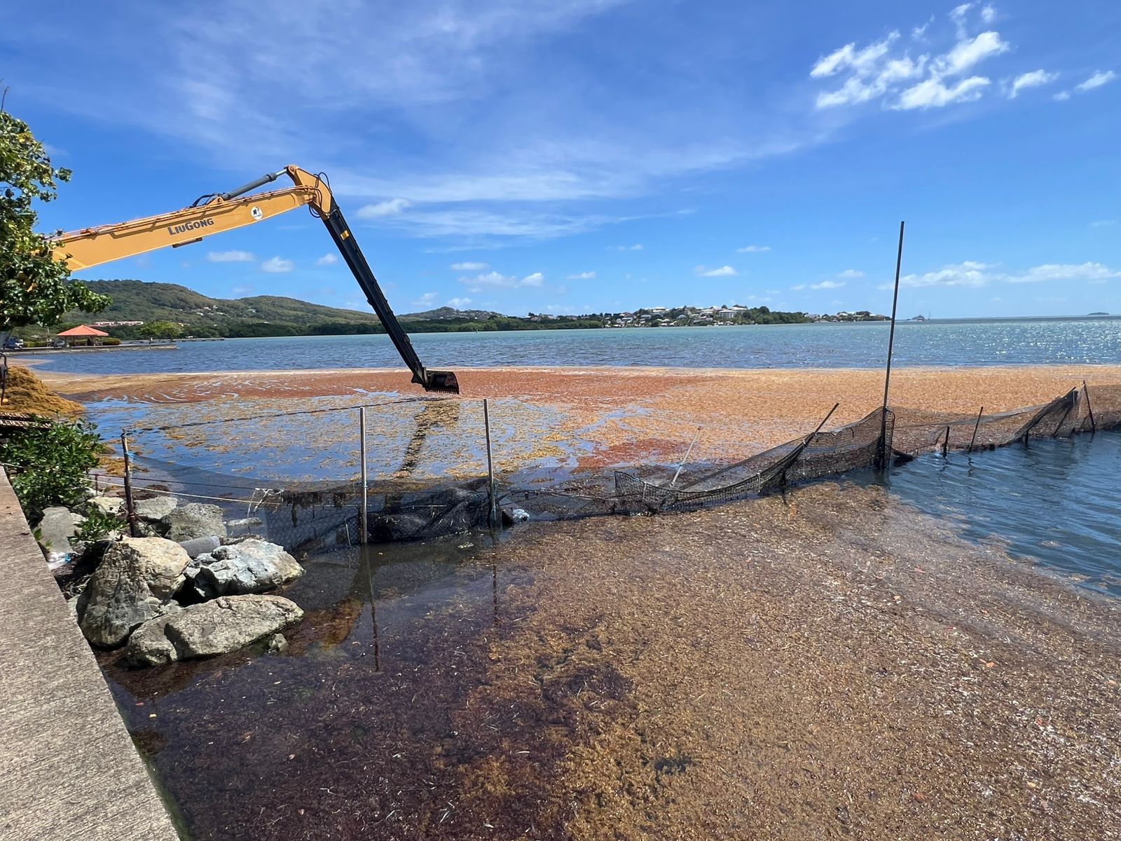 Sargasses : au Robert des filets supplémentaires sont installés pour lutter contre l’échouement massif des algues