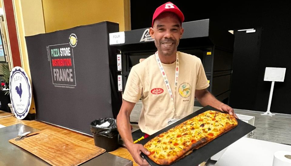 J'ai participé à plusieurs épreuves : la pizza classique, la pizza teglia, une pizza à pâte épaisse cuite en plaque, la pala, ce qu'on pourrait appeler communément la pizza au mètre. J'ai participé aussi à la focaccia, à la calzone et aussi aux épreuves de rapidité et de largeur. Le Trophée mondial, c'est un jeune tournoi. Donc toutes les nations ne sont pas encore représentées, mais il y en avait quelques-unes, notamment l'Italie. C'est une grande fierté pour moi. J'avais déjà participé en 2024 à un autre championnat qui a lieu à Parme. C'est toujours un plaisir de présenter les produits de la Martinique. J'ai pu travailler sur le féroce d'avocat, le jambon de Noël, le marlin fumé. Je travaille en direct avec un pêcheur qui pêche le marlin, qui le fume. C'est vraiment mon produit fort. Pour moi, la pâte à pizza, ce n'est qu'une assiette et après, on fait vraiment ce qu'on veut dessus.
