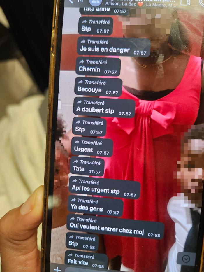 Quelques heures avant le drame, il avait envoyé des messages d’appels au secours à sa tante, comme le montre cette capture d’écran de téléphone ci-dessous.