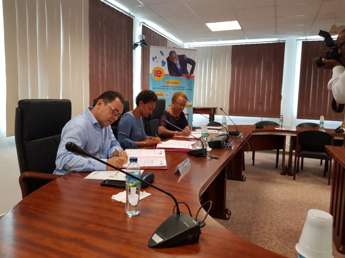 À la rentrée prochaine, environ 5 000 étudiants vont bénéficier d'un an d'abonnement gratuit sur le site d'Inter Entreprise grâce à une convention qui a été signée, ce mardi matin (17 juillet 2018) sur le campus de Schoelcher entre l'Université des Antilles, Inter Entreprise et AXA.