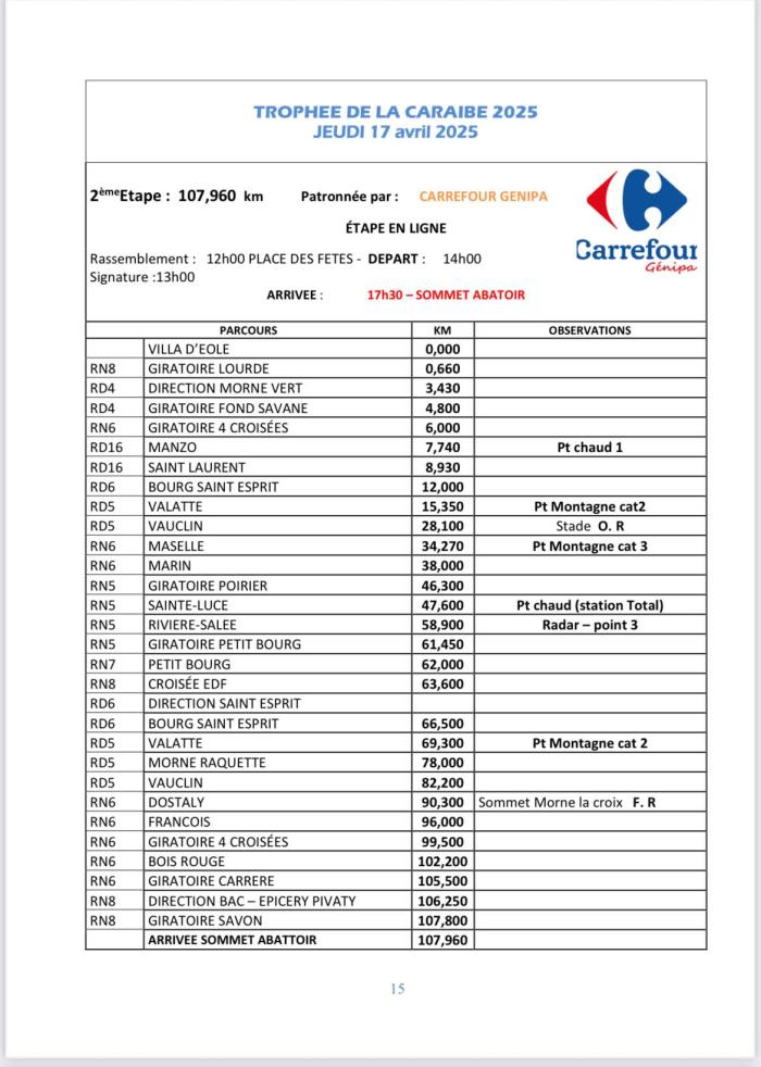 La deuxième étape de la 37ème édition du Trophée Cycliste de la Caraïbe s’est courue ce jeudi après-midi (17 avril).