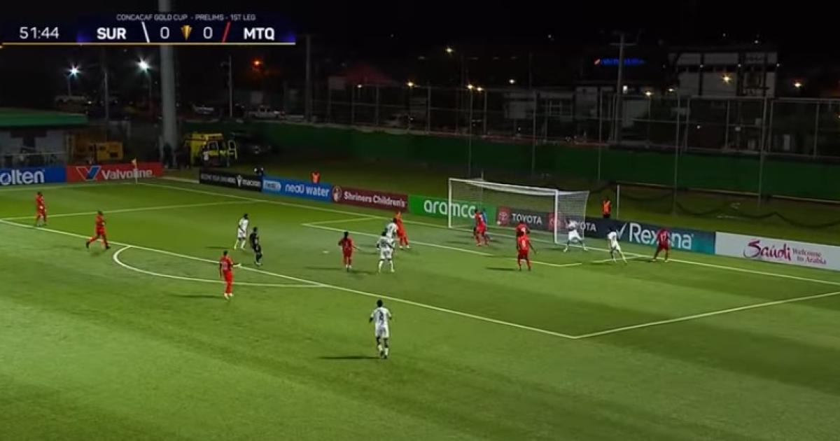 Malgré une reprise un peu plus offensive de Matinino, ce sont les Surinamais qui vont trouver la faille. Sur une passe de Denzel Jubitana, Gyrano Kerk ouvrait le score d'une frappe du pied droit dans la surface à la 52e minute.