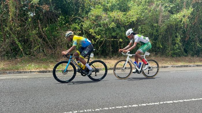 Pruner (TAG Cycling Racing) et Ojeda Solano (CCV) ont attaqué à Morne-Vert. Ils ont une grosse vingtaine de secondes d'avance sur le peloton