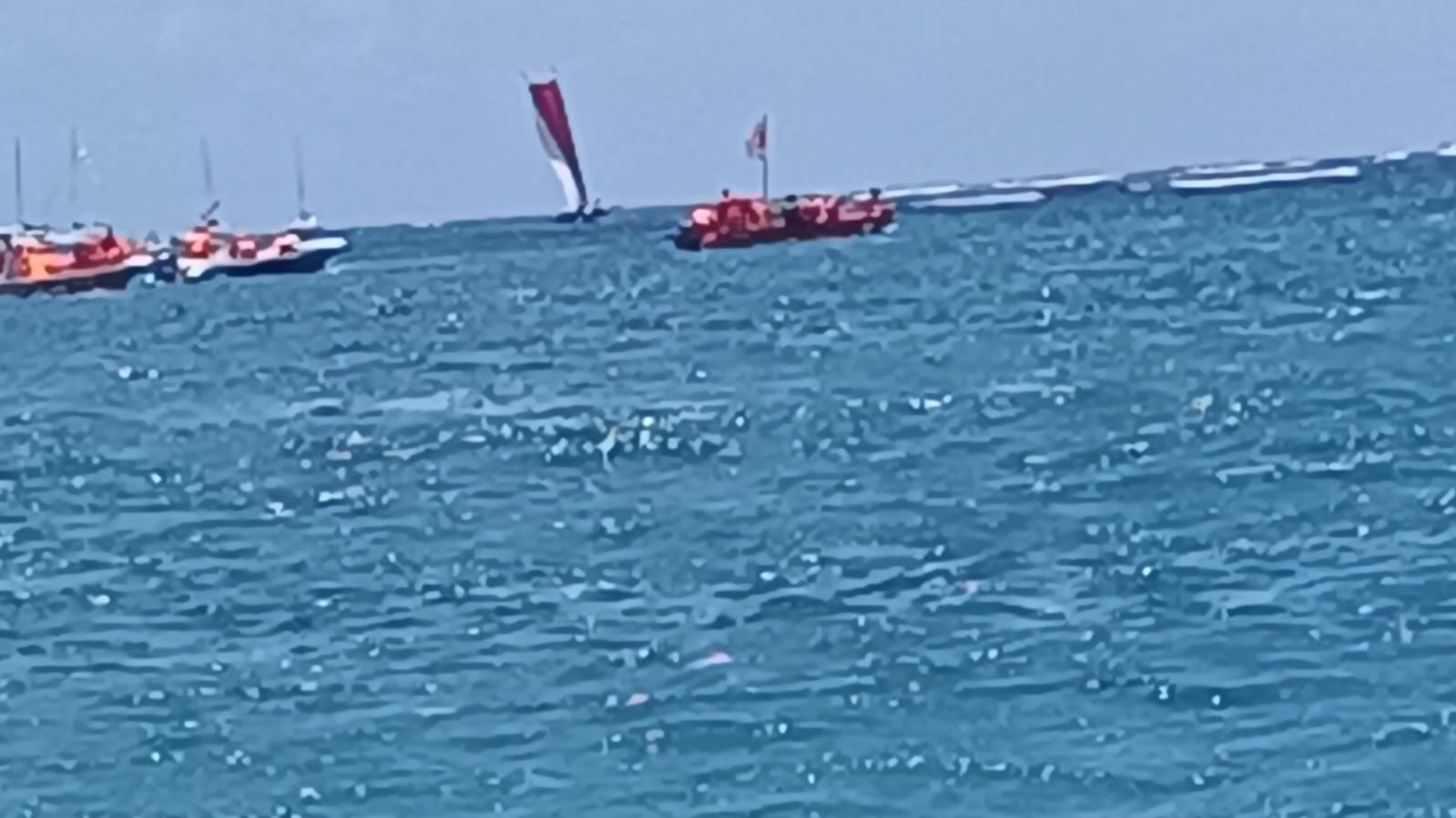 Le vent est légèrement Sud-Est. Ce qui oblige les yoles à s'écarter vers l'océan. Cottrell est toujours en tête mais CFA Umih Formation et Prixe Westpoint ont pris une position intermédiaire qui pourraient gêner Sara/autodistribution et UFR/Chanflor dans leur retour vers l'îlet Chancel