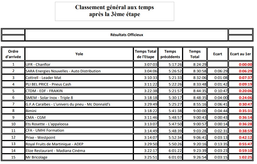 Avant les cayes entre le Robert et le François, Cottrell/Leader Mat a 3'46" d'avance sur Sara/autodistribution et 4'10" sur UFR/Chanflor