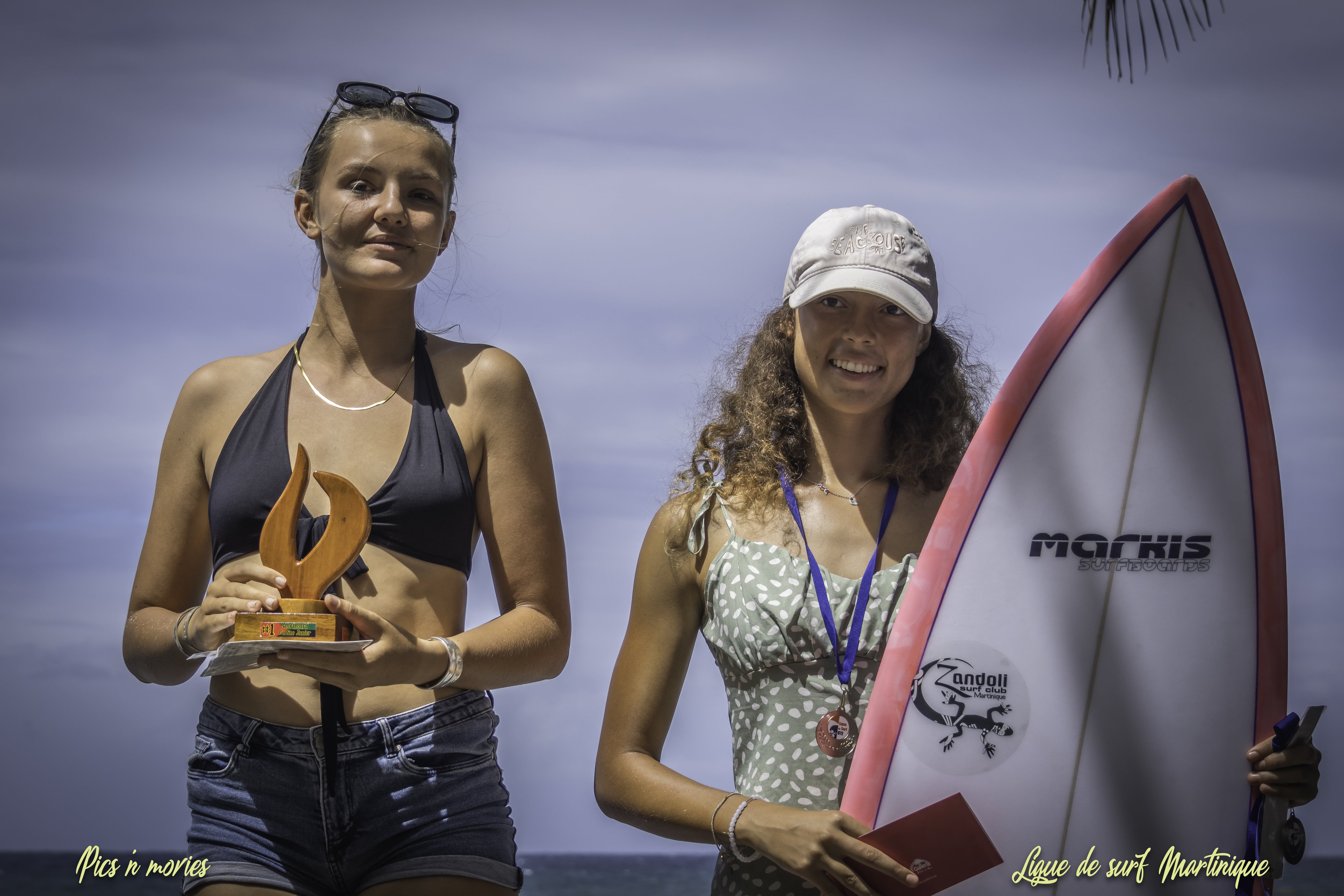 Ce samedi a pu déterminer des qualifiés pour le lendemain mais a aussi permis de décerner 2 titres. En bodyboard Junior, les 2 meilleurs jeunes pratiquants de l’île, tous deux s’entraînant le plus souvent au Diamant, et licenciés dans le même club se sont livrés un beau duel, Lenny Fradet (LMR) s’imposant devant Clément Maslin (LMR).