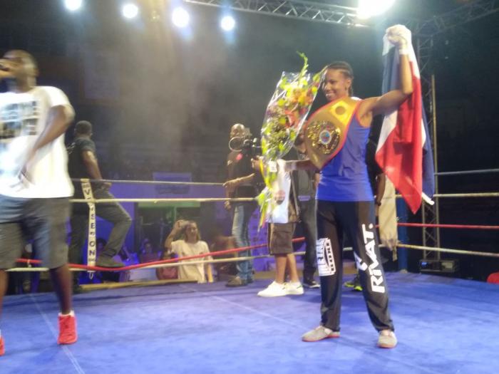 La Martiniquaise, Kanelle Léger a remporté sa deuxième couronne mondiale de savate boxe française samedi soir (28 octobre 2017) au Palais des sports du Lamentin.