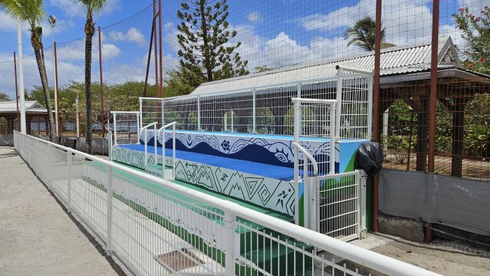 Des gradins en béton ont été construits et des bancs en plastique recyclé pourront accueillir les spectateurs et les sportifs. La décoration du site a été orchestrée par deux artistes et des élèves du collège Vincent Placoly.