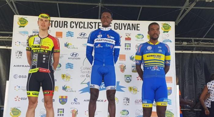 Le cycliste martiniquais monte sur la 2ème marche du podium final de la 29ème édition du Tour de Guyane. Lors de la 9ème et dernière étape entre Kourou et Cayenne ce dimanche, la sélection de Martinique a tout tenté pour décrocher la 1ère place au général.