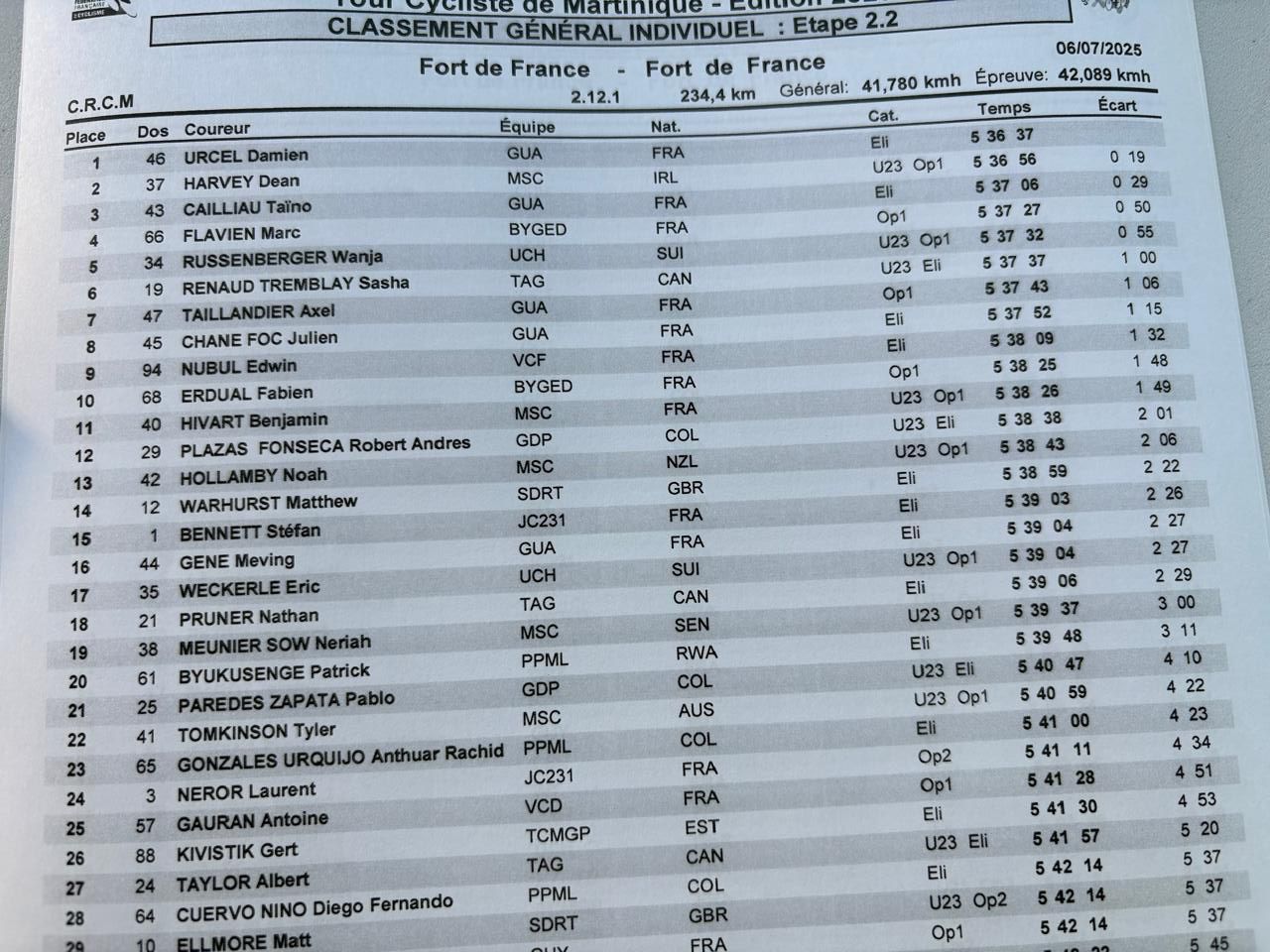 Edwin Nubul (Vélo Club du François) perd quant à lui une place au général. Il est désormais 9e à + 1min 32s.