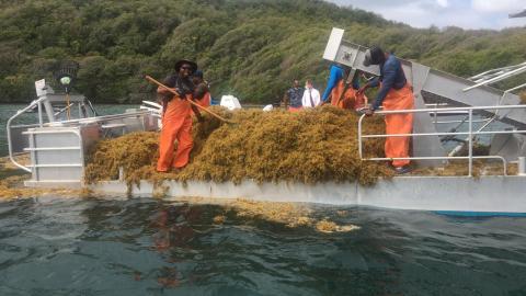 Dragueuse en action au port du Marigot : un espoir pour les pêcheurs bloqués par les sargasses