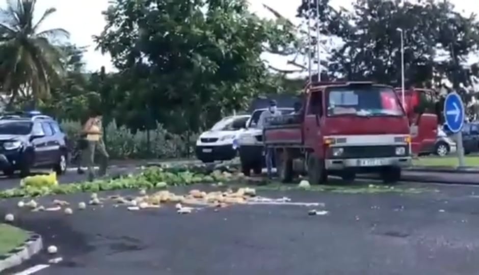 L'annonce de la fermeture des marchés de proximité a provoqué la colère des agriculteurs. Ce mercredi, ils ont déversé une partie de leur production sur la voie publique à Baie-Mahault.