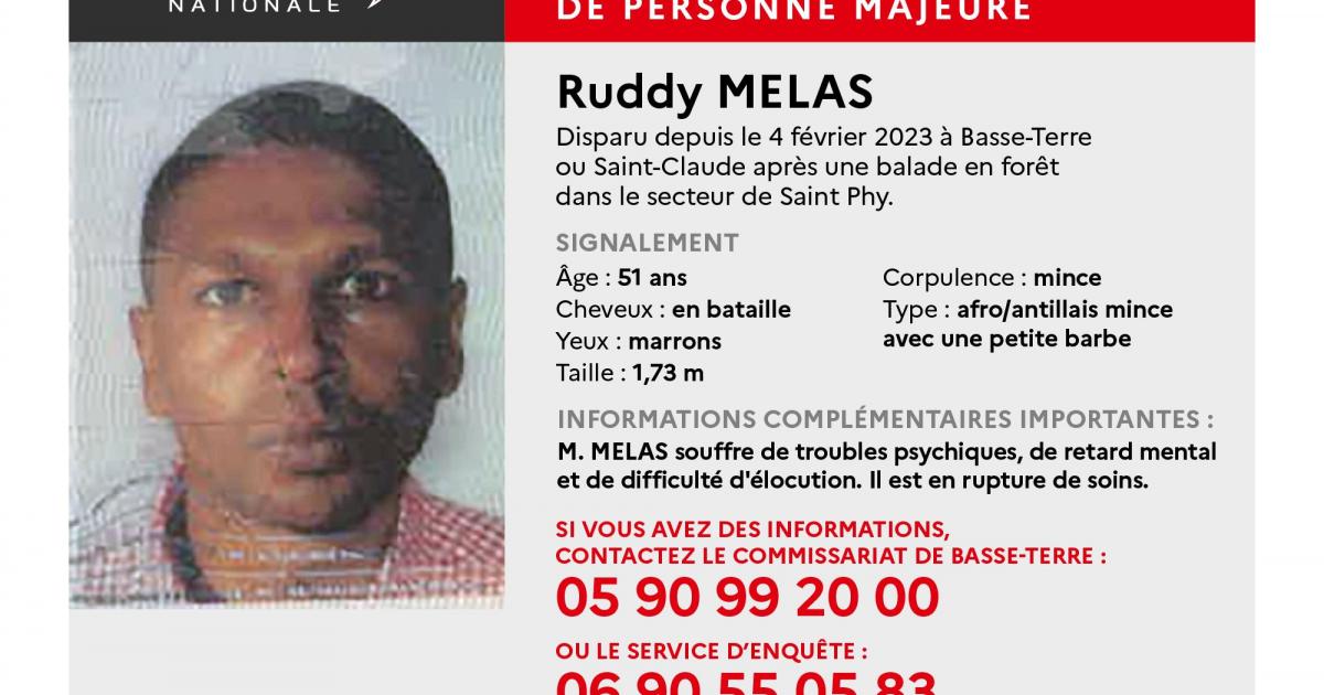 Depuis une balade en forêt à Basse-Terre ou Saint-Claude dans le secteur de Saint Phy, Ruddy Melas n’a plus donné de nouvelle. Sa disparition remonte au 4 février dernier.