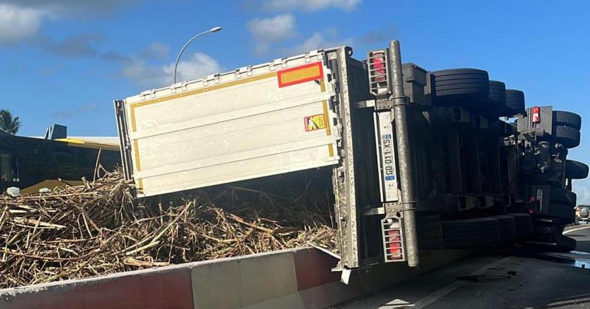Le conducteur d’un camion rempli de cannes, qui circulait en direction de Pointe-à-Pitre, aurait, pour une raison encore indéterminée, perdu le contrôle de son engin qui s’est renversé sur la chaussée. Il est légèrement blessé selon les pompiers.