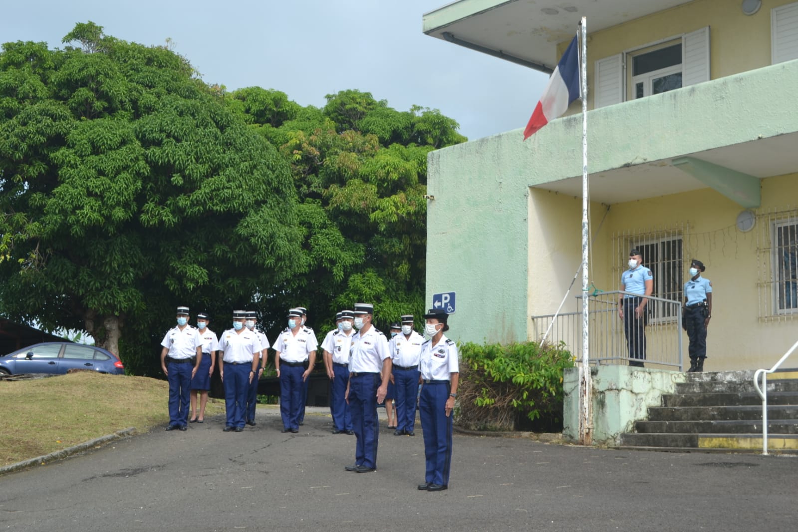 Les commandants des autres unités de la compagnie de Pointe-à-Pitre ainsi qu'un adjoint au maire de Petit-Bourg et le commandant de la police municipale. Le séjour du nouveau capitaine sur ce poste en Guadeloupe devrait durer 3 ou 4 ans.