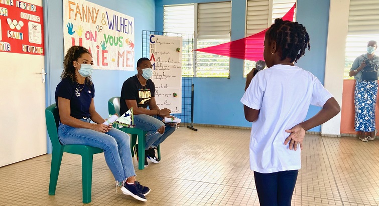 Fanny Quenot et Wilhem Belocian à la rencontre d'élèves guadeloupéens
