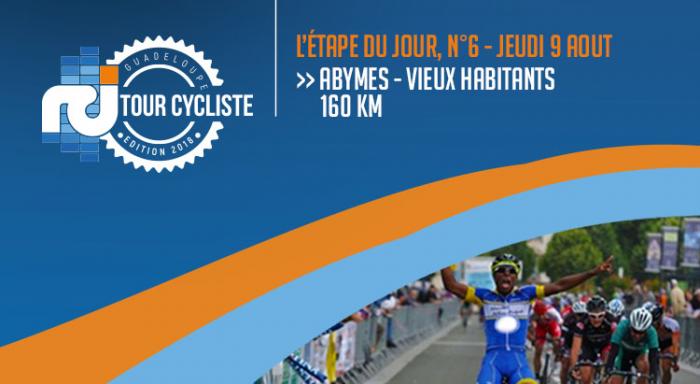 La 6ème étape du tour de la Guadeloupe 2018 s'est élancée des Abymes à 10h. Longue de 160km, l'arrivée se jouera à Vieux-Habitants. Avec de la montage au programme, cette étape promet beaucoup de rebondissements.